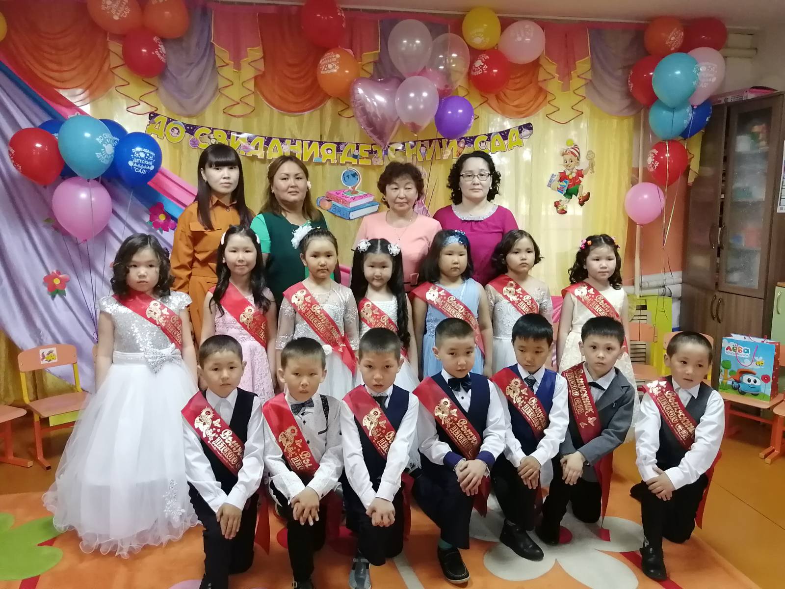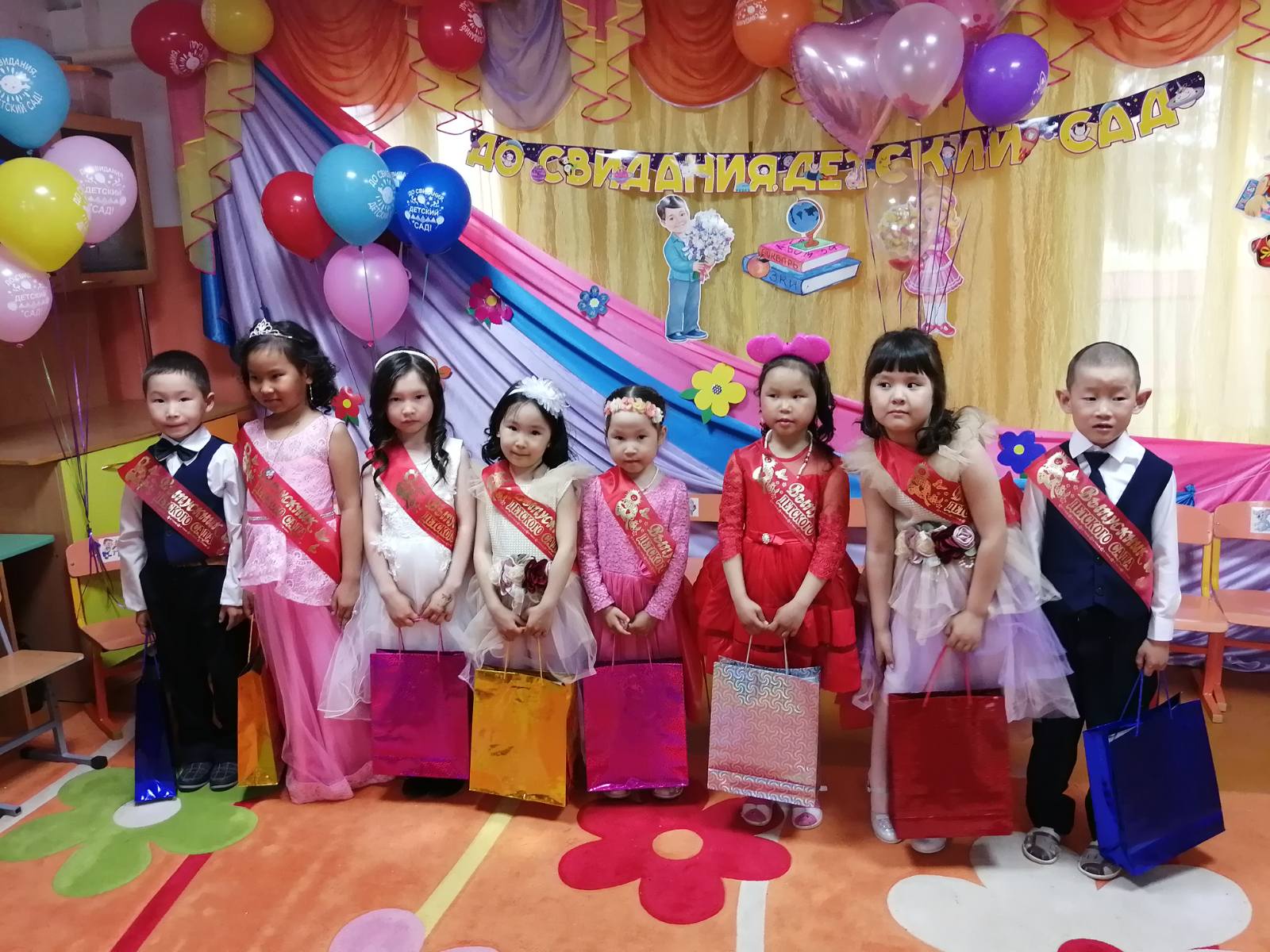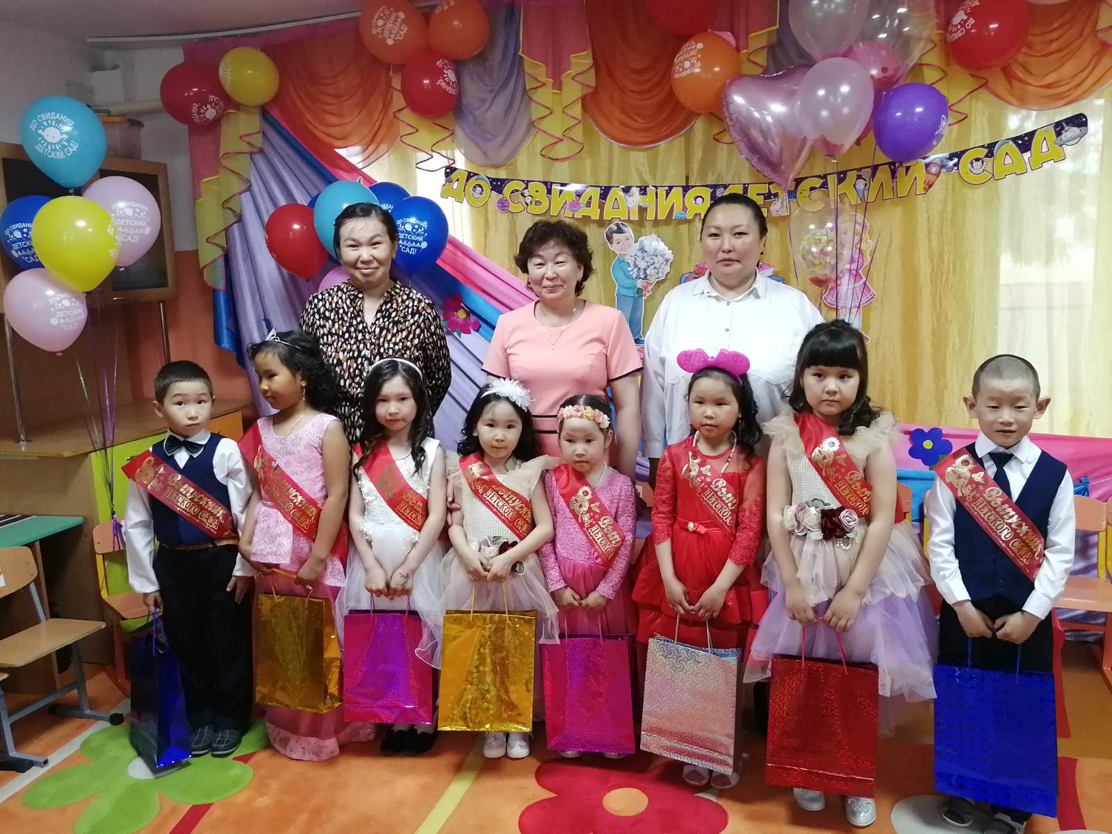 Традиционно в конце праздника детей с окончанием детского сада поздравили заведующий МБДОУ детский сад «Диинчигеш» Кара-Сал Яна Степановна вручила всем детям дипломы и подарки.
