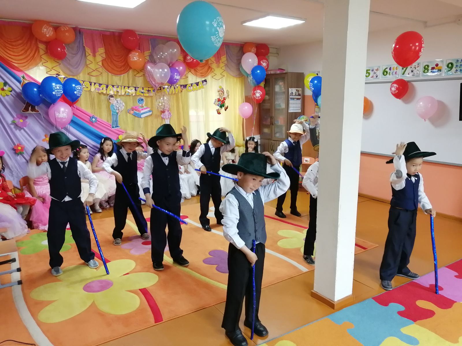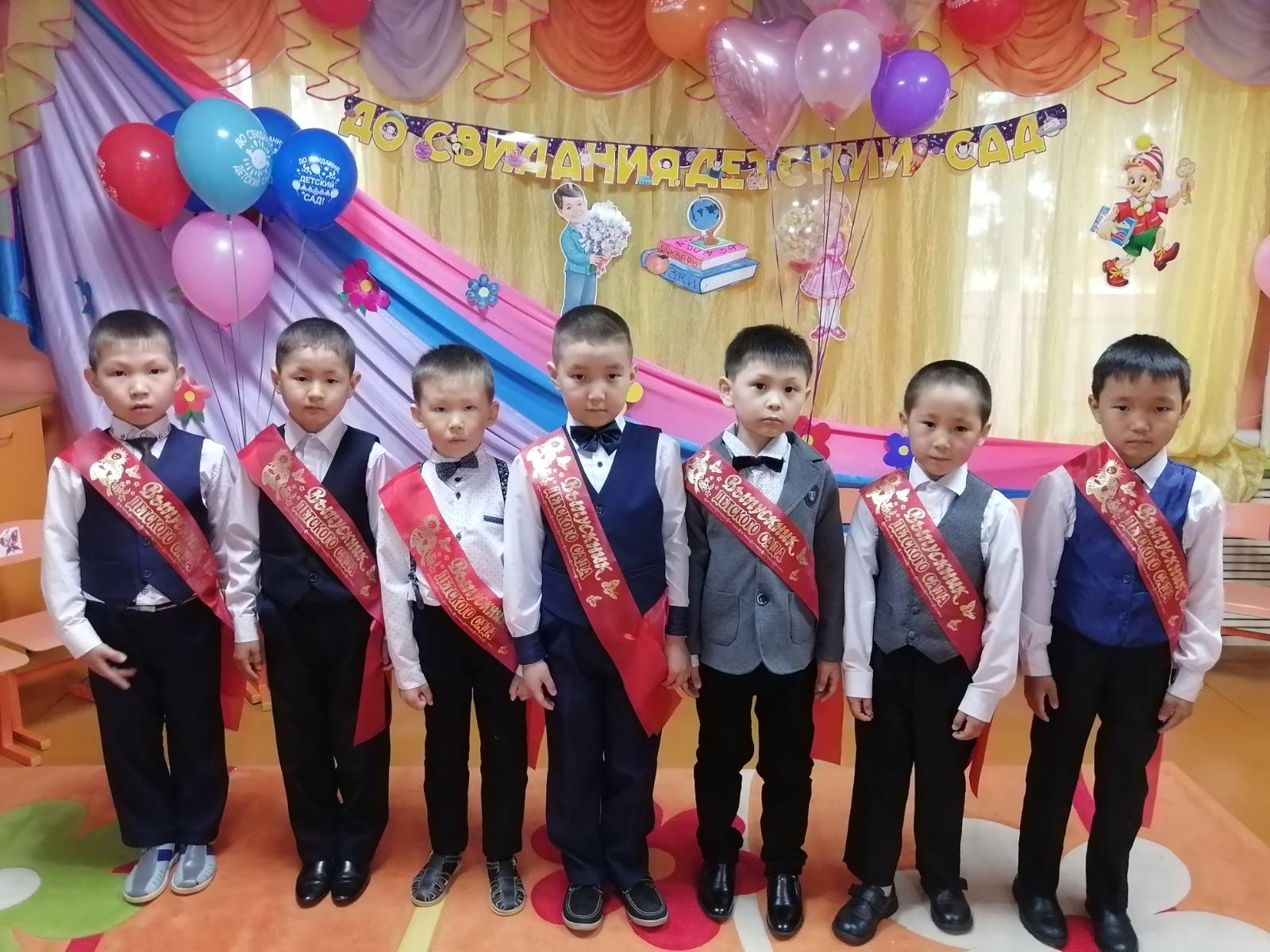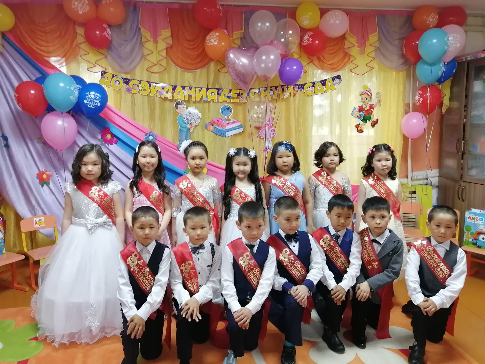 Подготовка к выпускному утреннику была очень волнительной и ответственной. Были на празднике красивые песни «Оореникчи болдум», «Скоро в школу», «У моей России длинные косички!», «Круто ты попал ты в детский сад!», и танцы – «Танец джентельменов», «Современный танец с ленточками», «Вальс выпускников», «Голубь мира», игры и подарки. Но не обошлось без приключений. Большим сюрпризом для ребят стало появление сказочных героев: Старик Хоттабыч, Кикимора, Незнайка. Все герои – это были наши воспитатели. Большое им спасибо от имени сотрудников детского сада и родителей выпускников за эту сказку! Ребята получили в награду подарки и дипломы выпускников. Завершился выпускной праздник заключительной песней «Круто ты попал в детский сад!»